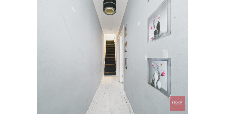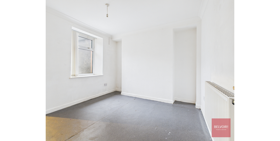 • Living room to the front (in need of decoration, carpeted, large window, radiator)